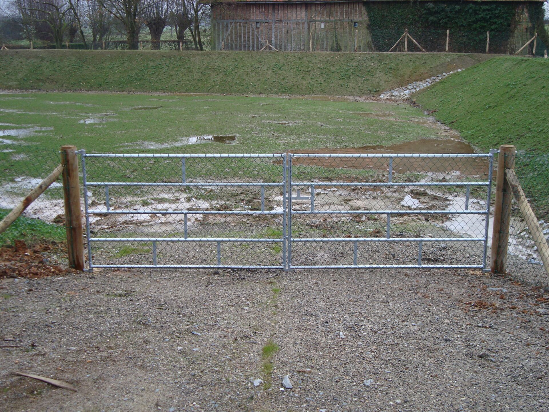 Ce type de portail champêtre métal à barreaux verticaux ou grillagé offre une transparence visuelle tout en interdisant efficacement l’intrusion sur vos sites.