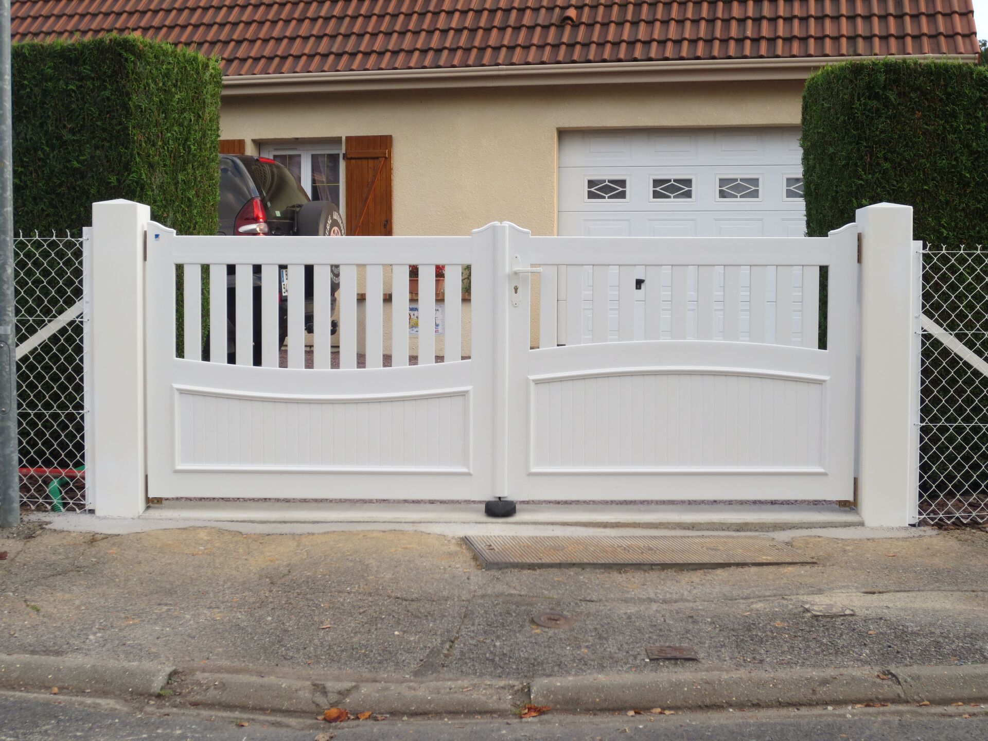 Le Portail PVC Battant Classique que nous installons est un Modèle Personnalisable Sans Entretien offrant une excellente résistance aux intempéries. Le PVC assure une longévité remarquable sans nécessiter de peinture ou de traitement. Nos installations sont réalisées sur-mesure, garantissant une qualité de pose professionnelle et une intégration parfaite à votre résidence à pont l’eveque dans le calvados.