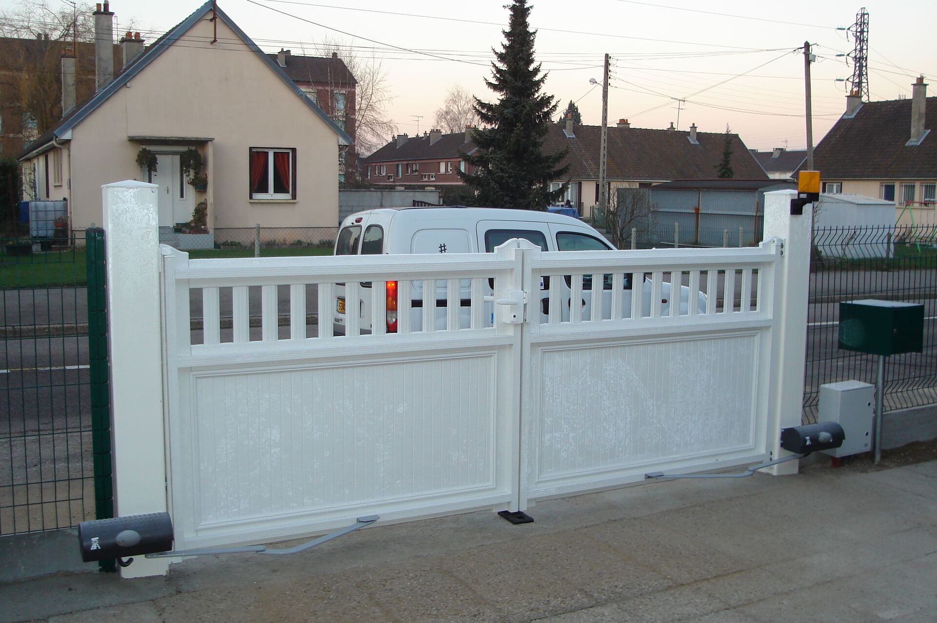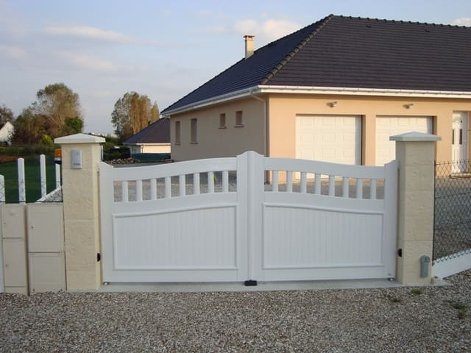 Le PVC renforcé offre une excellente résistance aux intempéries et ne nécessite qu'un entretien réduit, tout en garantissant une sécurité efficace. Ce modèle 2 vantaux est motorisé pour un confort d'utilisation quotidien. Chaque installation est réalisée avec une qualité de pose professionnelle, garantissant la fiabilité de l'automatisme et la longévité du portail en Seine-Maritime 76 et Mont-Saint-Aignan.